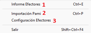 Configuración Efectores: Es donde se configura y parametrizan los datos para generar el archivo de efectores. Esta sección debe ser utilizada sólo por usuarios avanzados, recomendamos no hacer cambios sin la supervisión de personal de Akaromsoft.