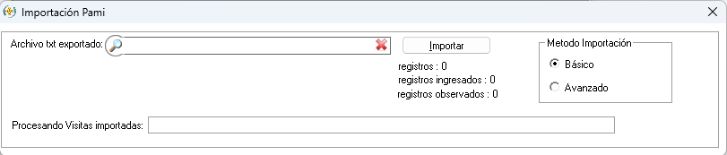 Al hacer click sobre Importación Pami se abre la siguiente ventana:
