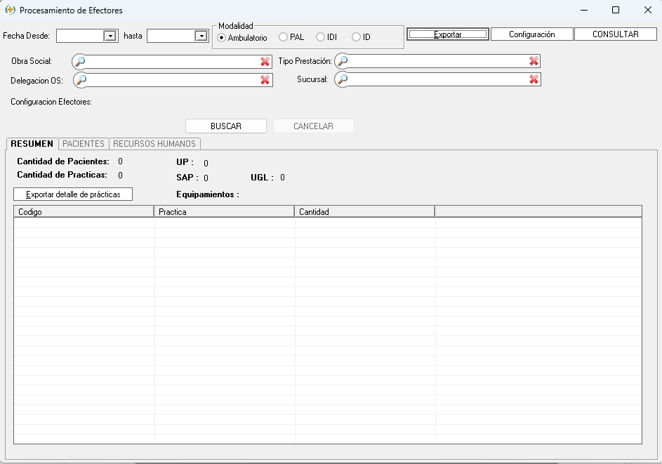 Este módulo es de uso exclusivo para PAMI. Sirve para generar el archivo de emulación de efectores de PAMI. También incluye una herramienta de importación de visitas para ingresar al sistema las visitas del dashboard de la página de PAMI