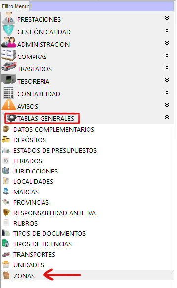 En el panel principal abrir el menú ‘TABLAS GENERALES’.