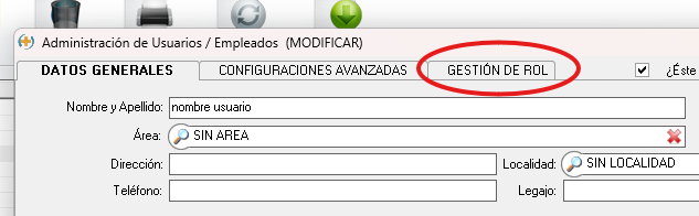 En “Rol” despliegue el listado de roles y elija el que quiere asignar al Usuario.